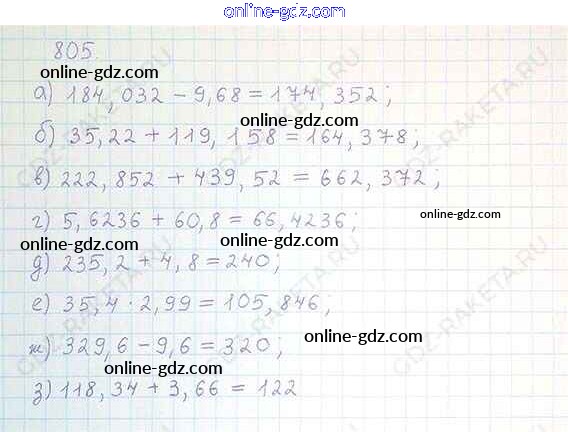 Готовые домашние задания по Математике за 6 класс Учебник Никольский, Потапов МГУ - школе 2014 - Номера 805