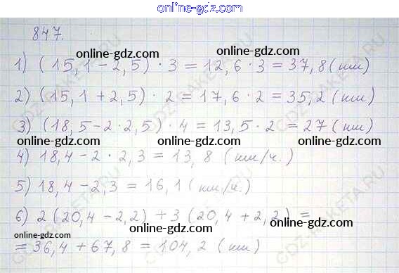 Готовые домашние задания по Математике за 6 класс Учебник Никольский, Потапов МГУ - школе 2014 - Номера 847