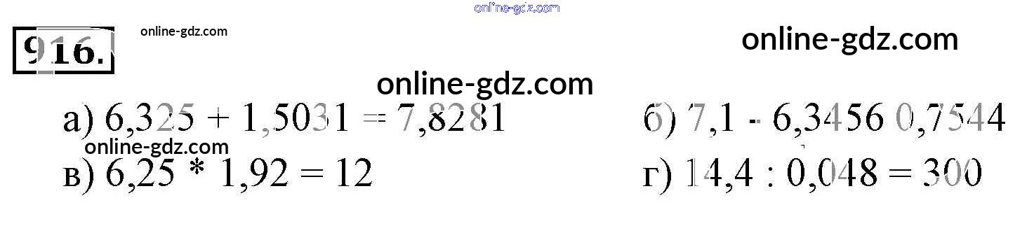 Готовые домашние задания по Математике за 6 класс Учебник Никольский, Потапов МГУ - школе 2014 - Номера 916