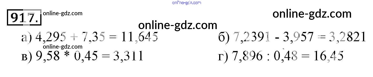 Готовые домашние задания по Математике за 6 класс Учебник Никольский, Потапов МГУ - школе 2014 - Номера 917