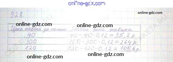 Готовые домашние задания по Математике за 6 класс Учебник Никольский, Потапов МГУ - школе 2014 - Номера 928