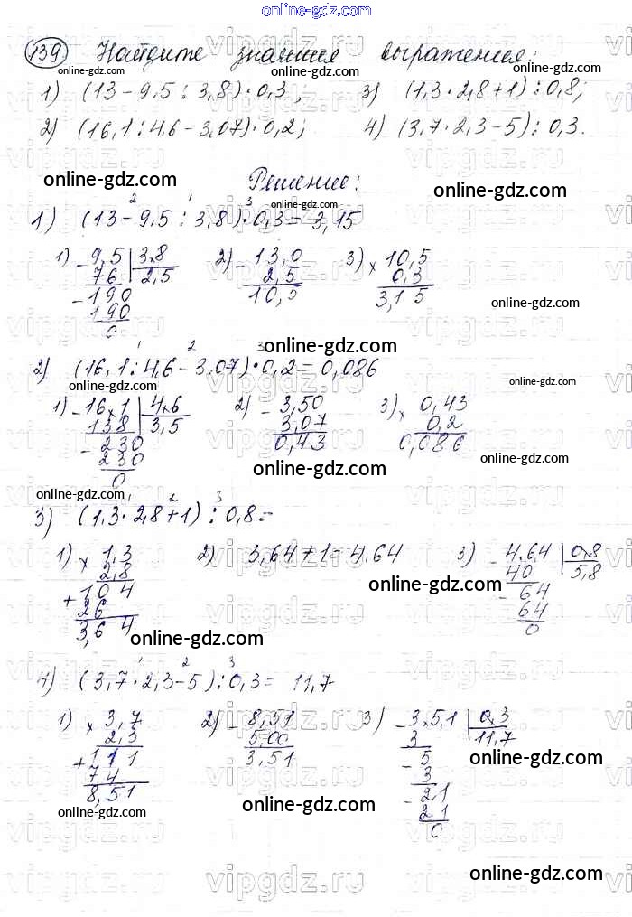 Готовые домашние задания по Математике за 6 класс Учебник Виленкин, Жохов 2014 - §1. Делимость чисел Глава 1 139