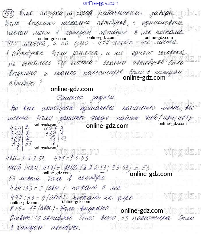 Готовые домашние задания по Математике за 6 класс Учебник Виленкин, Жохов 2014 - §1. Делимость чисел Глава 1 153