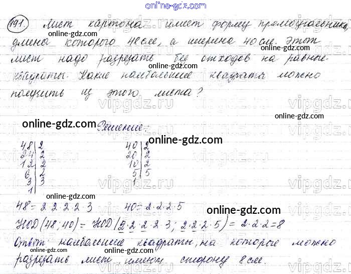 Готовые домашние задания по Математике за 6 класс Учебник Виленкин, Жохов 2014 - §1. Делимость чисел Глава 1 191