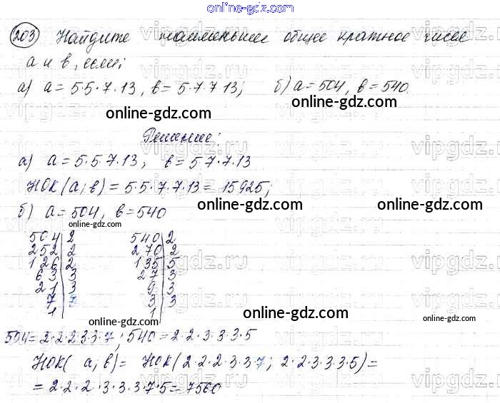 Готовые домашние задания по Математике за 6 класс Учебник Виленкин, Жохов 2014 - §1. Делимость чисел Глава 1 203