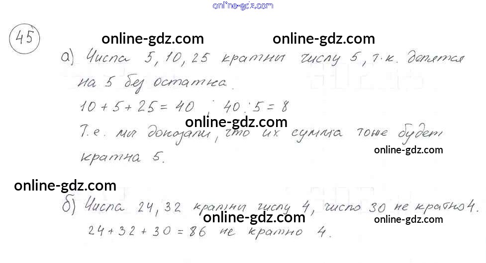 Готовые домашние задания по Математике за 6 класс Учебник Виленкин, Жохов 2014 - §1. Делимость чисел Глава 1 45