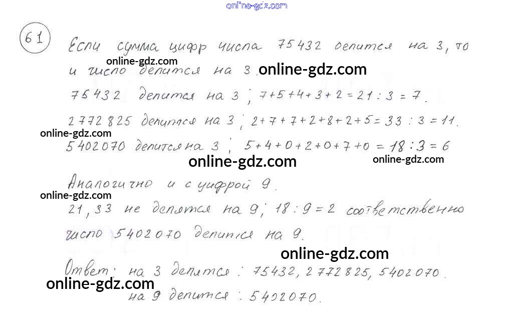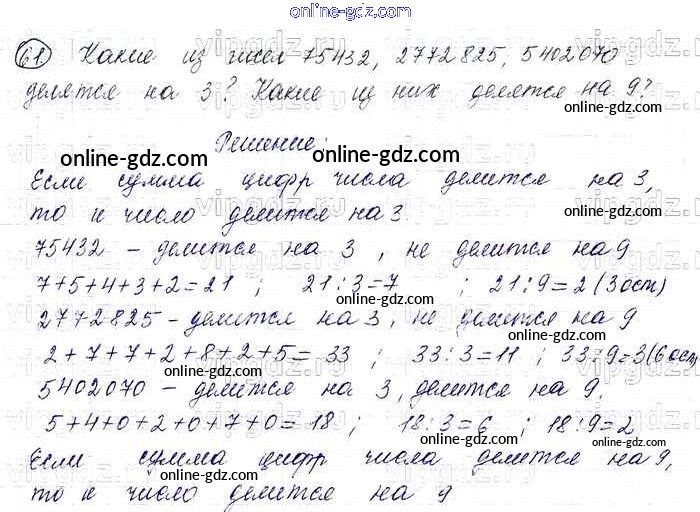 Готовые домашние задания по Математике за 6 класс Учебник Виленкин, Жохов 2014 - §1. Делимость чисел Глава 1 61