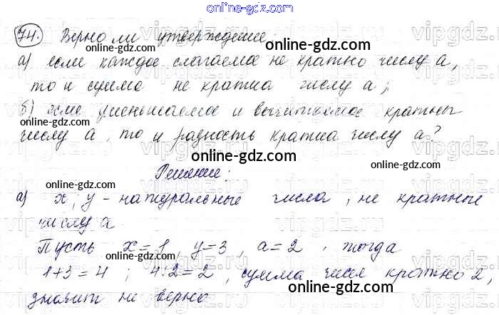 Готовые домашние задания по Математике за 6 класс Учебник Виленкин, Жохов 2014 - §1. Делимость чисел Глава 1 74
