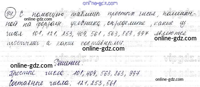 Готовые домашние задания по Математике за 6 класс Учебник Виленкин, Жохов 2014 - §1. Делимость чисел Глава 1 94