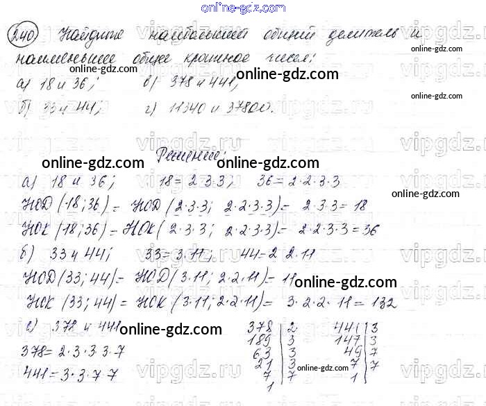 Готовые домашние задания по Математике за 6 класс Учебник Виленкин, Жохов 2014 - §2. Сложение и вычитание дробей с разными знаменателями Глава 1 240