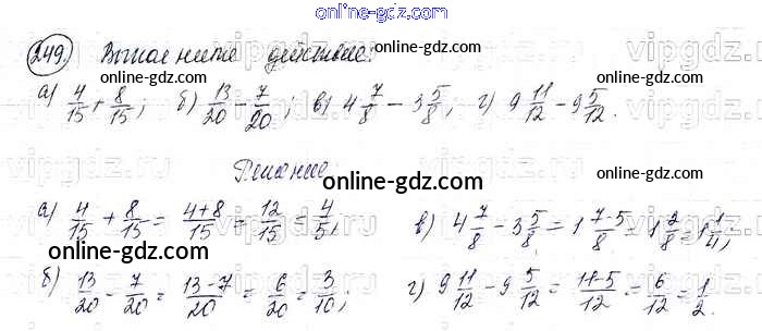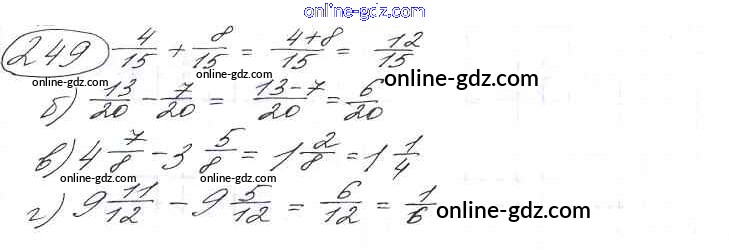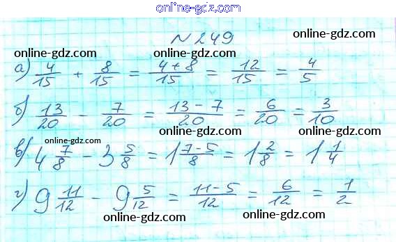 Готовые домашние задания по Математике за 6 класс Учебник Виленкин, Жохов 2014 - §2. Сложение и вычитание дробей с разными знаменателями Глава 1 249