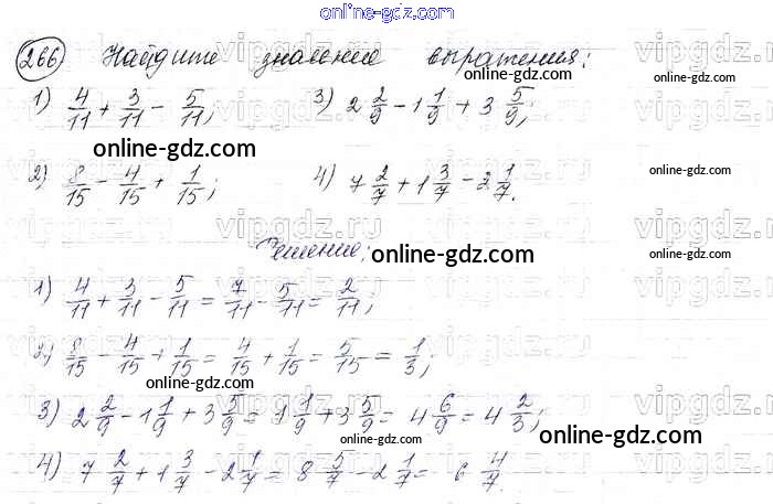 Готовые домашние задания по Математике за 6 класс Учебник Виленкин, Жохов 2014 - §2. Сложение и вычитание дробей с разными знаменателями Глава 1 266