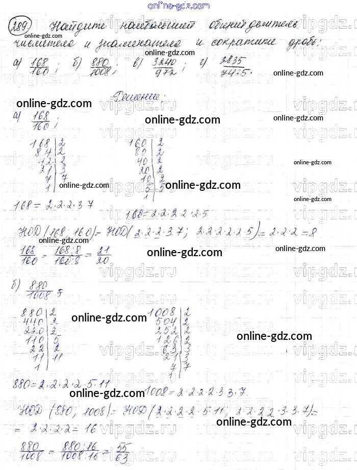 Готовые домашние задания по Математике за 6 класс Учебник Виленкин, Жохов 2014 - §2. Сложение и вычитание дробей с разными знаменателями Глава 1 289