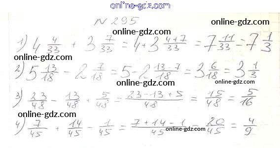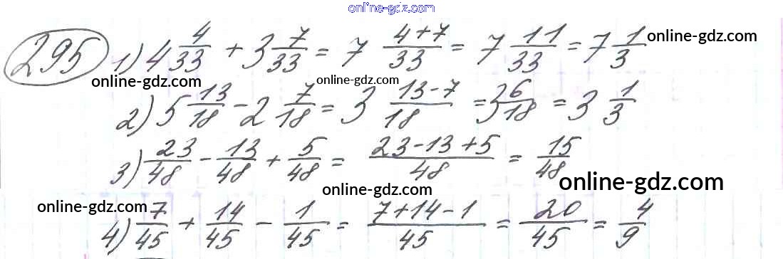 Готовые домашние задания по Математике за 6 класс Учебник Виленкин, Жохов 2014 - §2. Сложение и вычитание дробей с разными знаменателями Глава 1 295