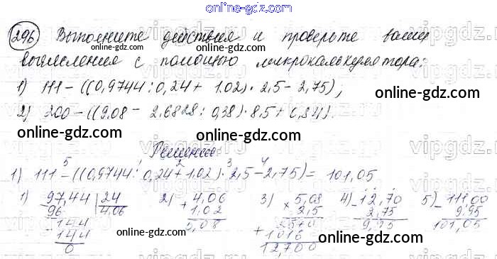 Готовые домашние задания по Математике за 6 класс Учебник Виленкин, Жохов 2014 - §2. Сложение и вычитание дробей с разными знаменателями Глава 1 296