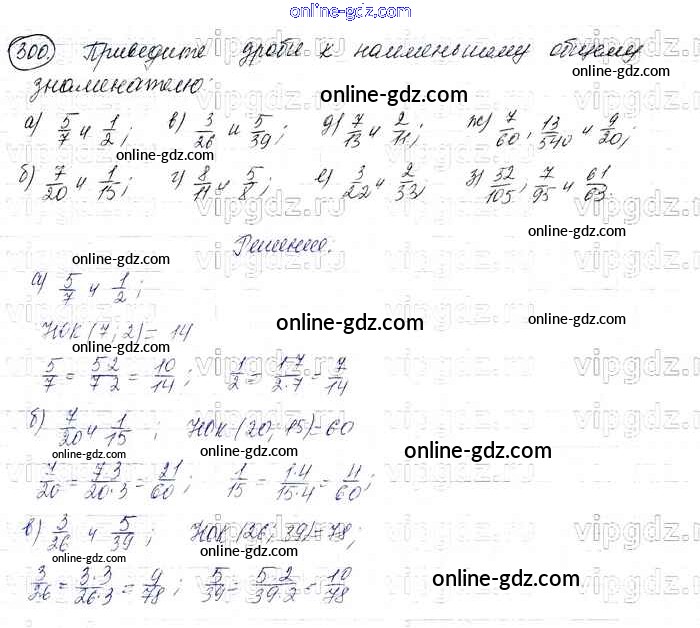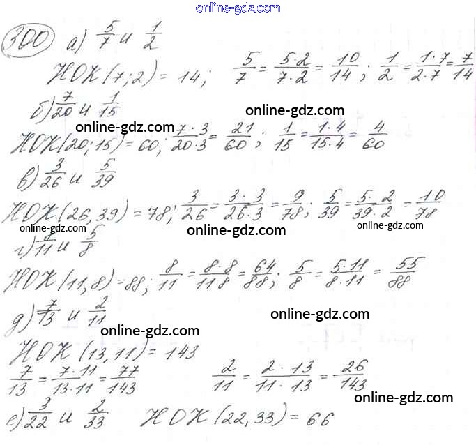 Готовые домашние задания по Математике за 6 класс Учебник Виленкин, Жохов 2014 - §2. Сложение и вычитание дробей с разными знаменателями Глава 1 300