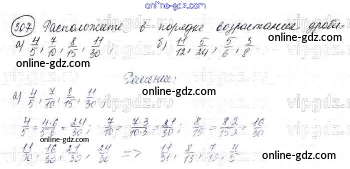 Готовые домашние задания по Математике за 6 класс Учебник Виленкин, Жохов 2014 - §2. Сложение и вычитание дробей с разными знаменателями Глава 1 307