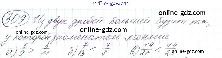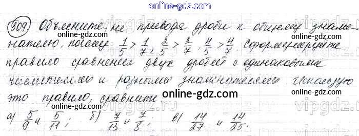 Готовые домашние задания по Математике за 6 класс Учебник Виленкин, Жохов 2014 - §2. Сложение и вычитание дробей с разными знаменателями Глава 1 309