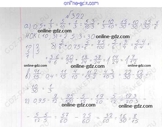 Готовые домашние задания по Математике за 6 класс Учебник Виленкин, Жохов 2014 - §2. Сложение и вычитание дробей с разными знаменателями Глава 1 322