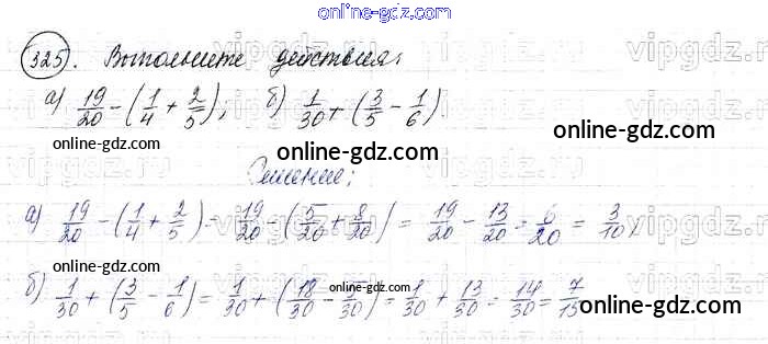 Готовые домашние задания по Математике за 6 класс Учебник Виленкин, Жохов 2014 - §2. Сложение и вычитание дробей с разными знаменателями Глава 1 325