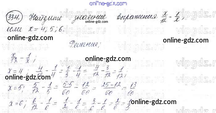 Готовые домашние задания по Математике за 6 класс Учебник Виленкин, Жохов 2014 - §2. Сложение и вычитание дробей с разными знаменателями Глава 1 334