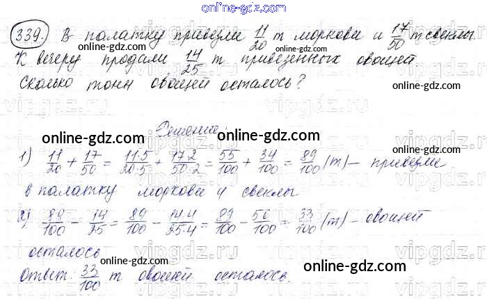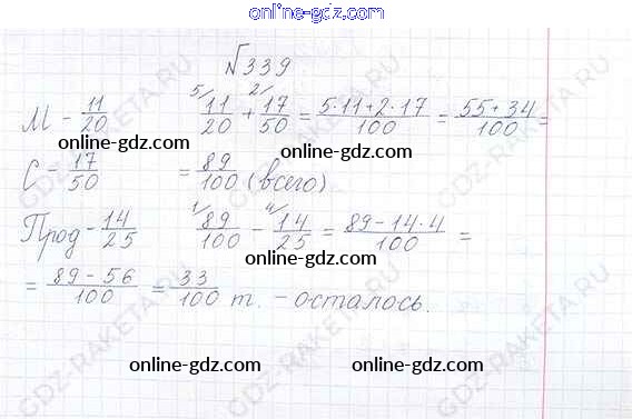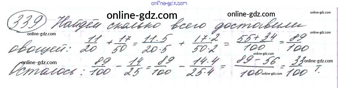 Готовые домашние задания по Математике за 6 класс Учебник Виленкин, Жохов 2014 - §2. Сложение и вычитание дробей с разными знаменателями Глава 1 339