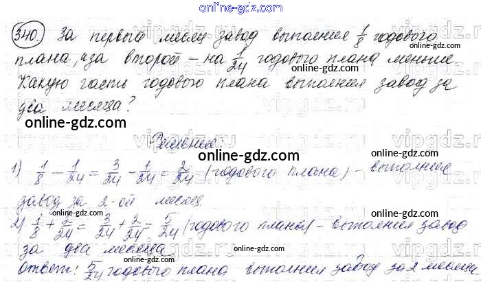 Готовые домашние задания по Математике за 6 класс Учебник Виленкин, Жохов 2014 - §2. Сложение и вычитание дробей с разными знаменателями Глава 1 340