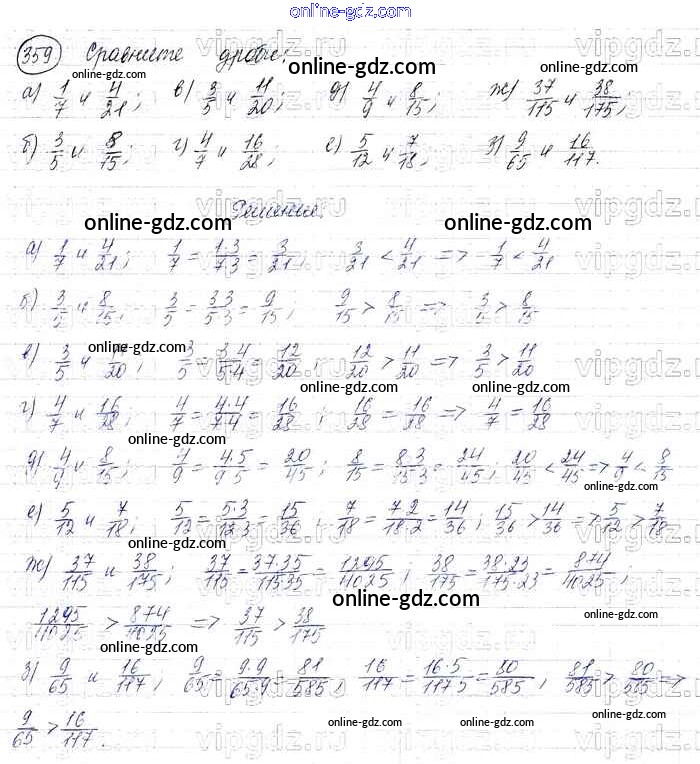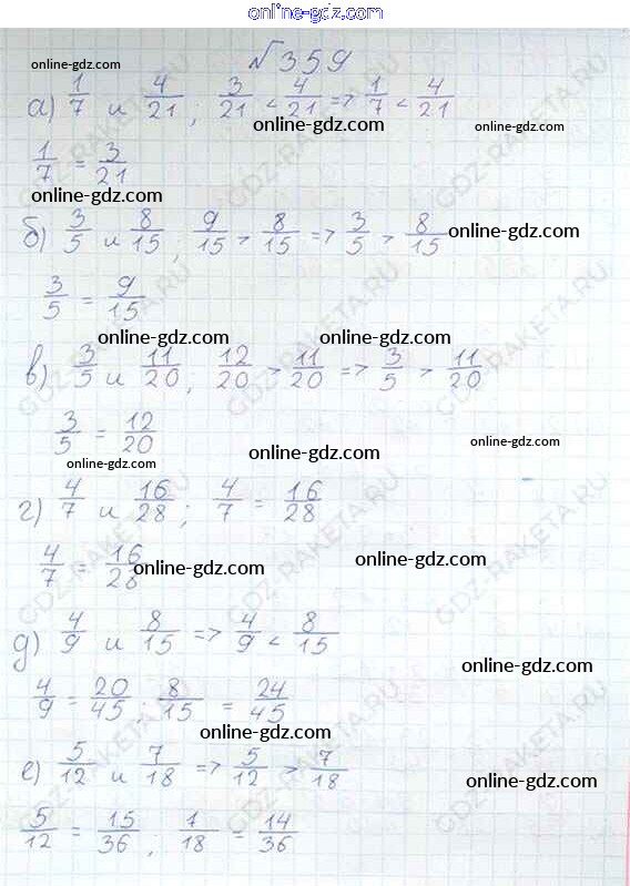 Готовые домашние задания по Математике за 6 класс Учебник Виленкин, Жохов 2014 - §2. Сложение и вычитание дробей с разными знаменателями Глава 1 359
