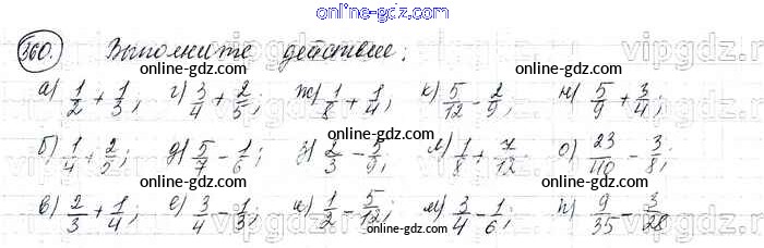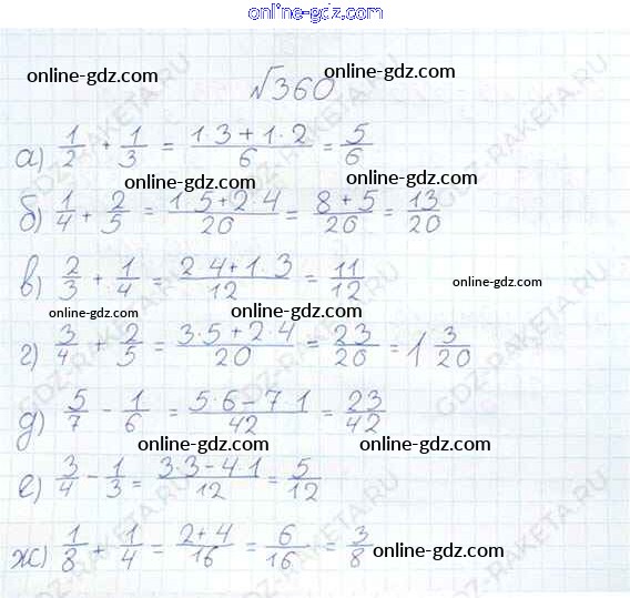 Готовые домашние задания по Математике за 6 класс Учебник Виленкин, Жохов 2014 - §2. Сложение и вычитание дробей с разными знаменателями Глава 1 360