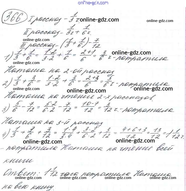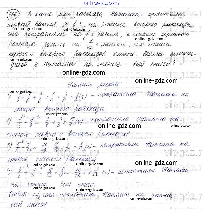 Готовые домашние задания по Математике за 6 класс Учебник Виленкин, Жохов 2014 - §2. Сложение и вычитание дробей с разными знаменателями Глава 1 366