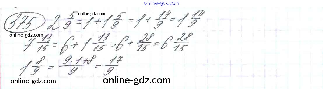 Готовые домашние задания по Математике за 6 класс Учебник Виленкин, Жохов 2014 - §2. Сложение и вычитание дробей с разными знаменателями Глава 1 375