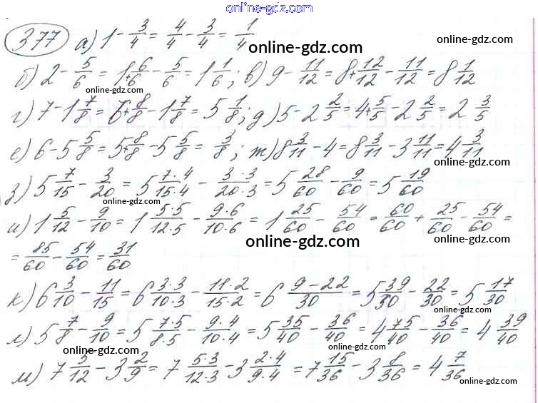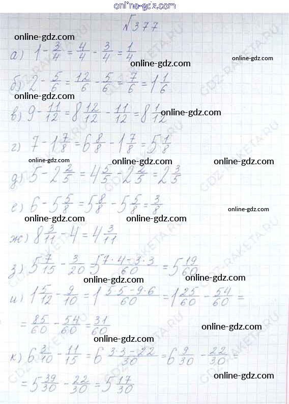 Готовые домашние задания по Математике за 6 класс Учебник Виленкин, Жохов 2014 - §2. Сложение и вычитание дробей с разными знаменателями Глава 1 377