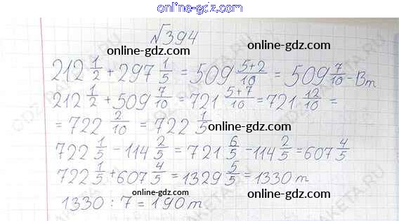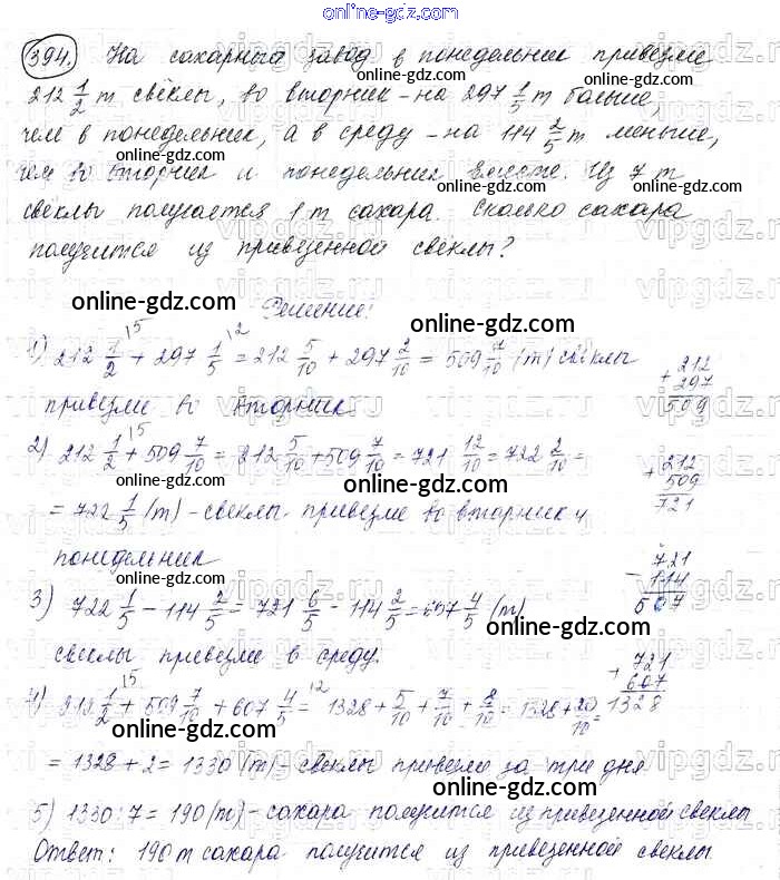 Готовые домашние задания по Математике за 6 класс Учебник Виленкин, Жохов 2014 - §2. Сложение и вычитание дробей с разными знаменателями Глава 1 394