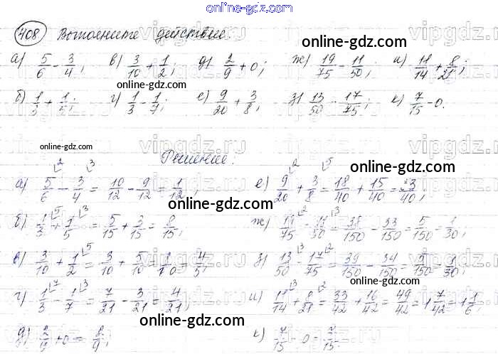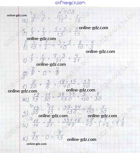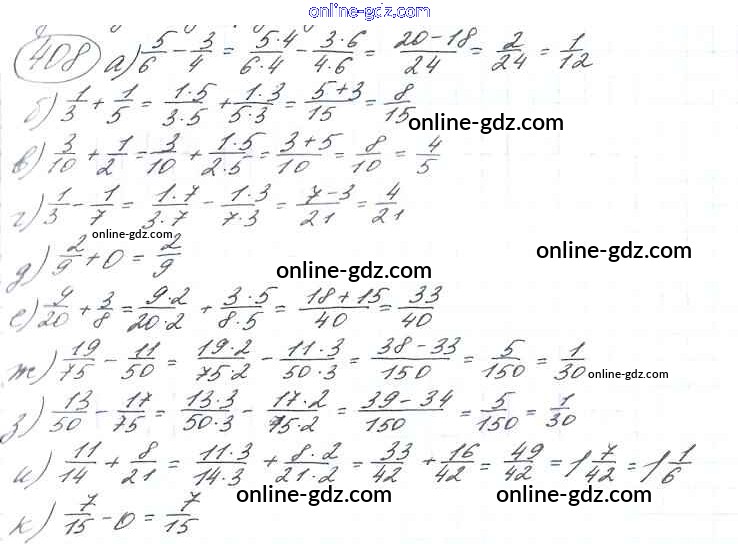 Готовые домашние задания по Математике за 6 класс Учебник Виленкин, Жохов 2014 - §2. Сложение и вычитание дробей с разными знаменателями Глава 1 408