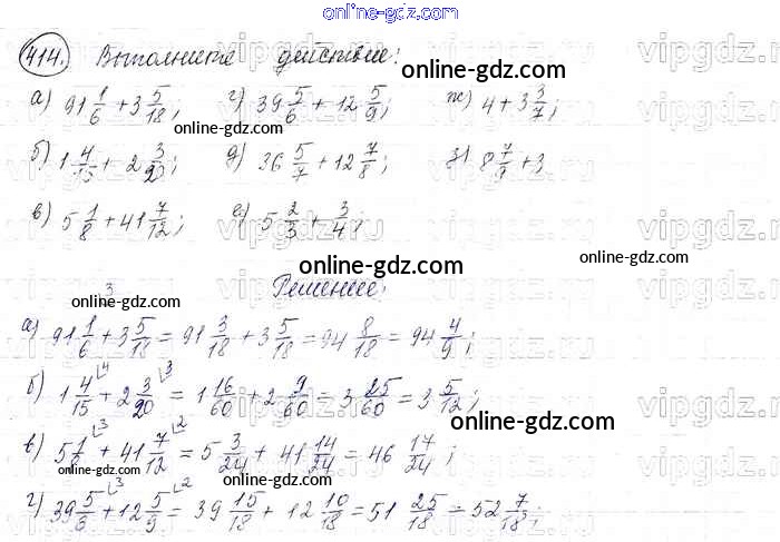 Готовые домашние задания по Математике за 6 класс Учебник Виленкин, Жохов 2014 - §2. Сложение и вычитание дробей с разными знаменателями Глава 1 414