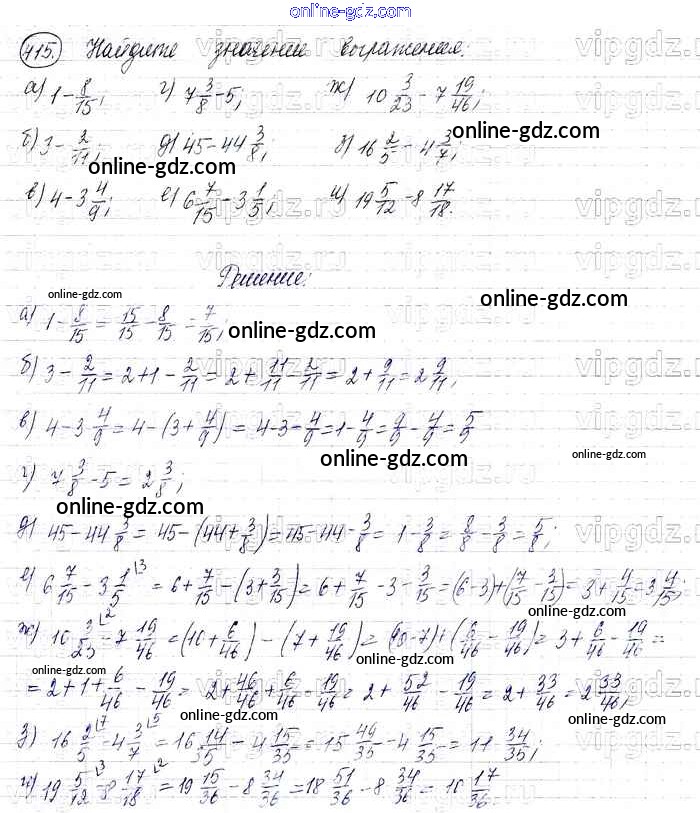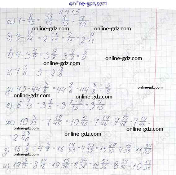 Готовые домашние задания по Математике за 6 класс Учебник Виленкин, Жохов 2014 - §2. Сложение и вычитание дробей с разными знаменателями Глава 1 415