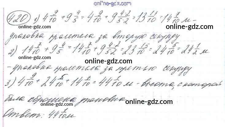 Готовые домашние задания по Математике за 6 класс Учебник Виленкин, Жохов 2014 - §2. Сложение и вычитание дробей с разными знаменателями Глава 1 420