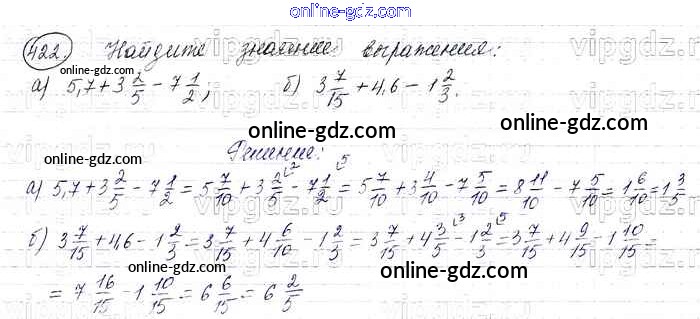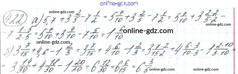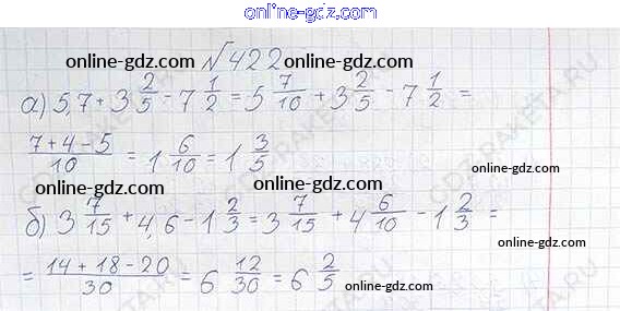 Готовые домашние задания по Математике за 6 класс Учебник Виленкин, Жохов 2014 - §2. Сложение и вычитание дробей с разными знаменателями Глава 1 422