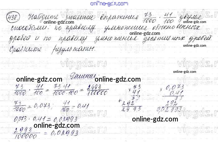 Готовые домашние задания по Математике за 6 класс Учебник Виленкин, Жохов 2014 - §3. Умножение и деление обыкновенных дробей Глава 1 438