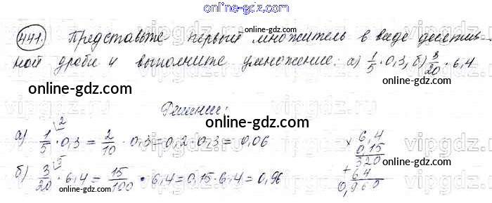 Готовые домашние задания по Математике за 6 класс Учебник Виленкин, Жохов 2014 - §3. Умножение и деление обыкновенных дробей Глава 1 441