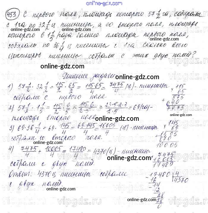Готовые домашние задания по Математике за 6 класс Учебник Виленкин, Жохов 2014 - §3. Умножение и деление обыкновенных дробей Глава 1 453