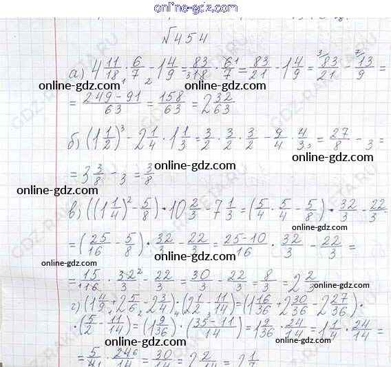 Готовые домашние задания по Математике за 6 класс Учебник Виленкин, Жохов 2014 - §3. Умножение и деление обыкновенных дробей Глава 1 454