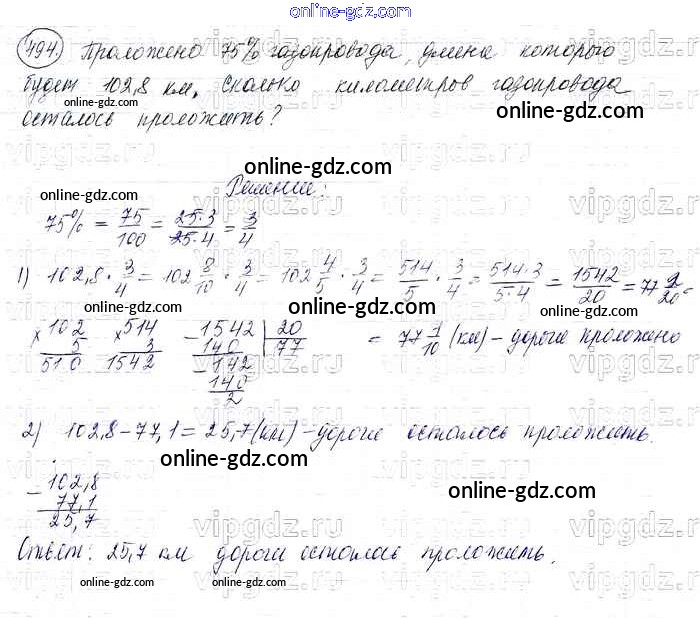 Готовые домашние задания по Математике за 6 класс Учебник Виленкин, Жохов 2014 - §3. Умножение и деление обыкновенных дробей Глава 1 494
