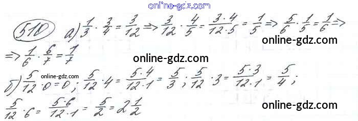 Готовые домашние задания по Математике за 6 класс Учебник Виленкин, Жохов 2014 - §3. Умножение и деление обыкновенных дробей Глава 1 510