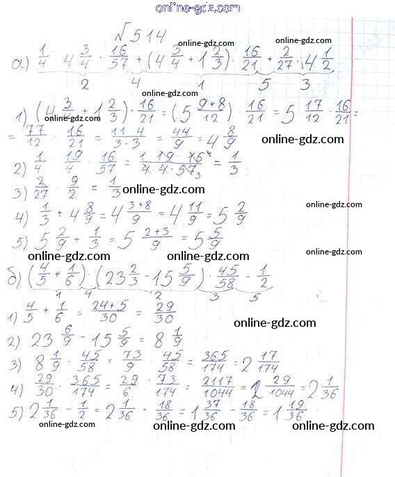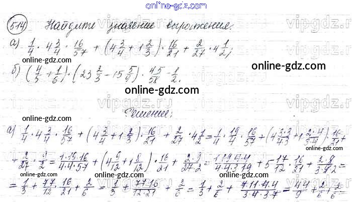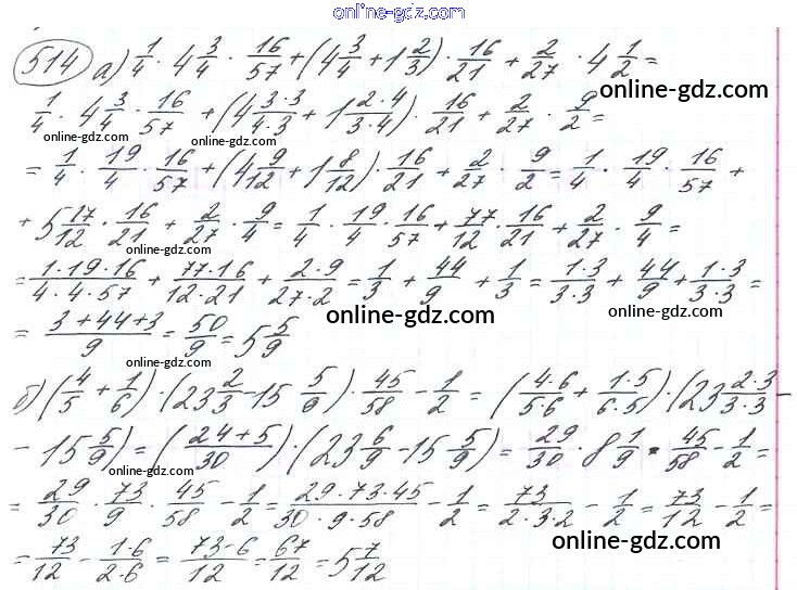 Готовые домашние задания по Математике за 6 класс Учебник Виленкин, Жохов 2014 - §3. Умножение и деление обыкновенных дробей Глава 1 514