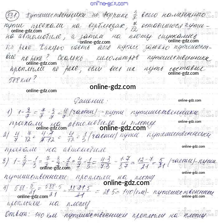 Готовые домашние задания по Математике за 6 класс Учебник Виленкин, Жохов 2014 - §3. Умножение и деление обыкновенных дробей Глава 1 531