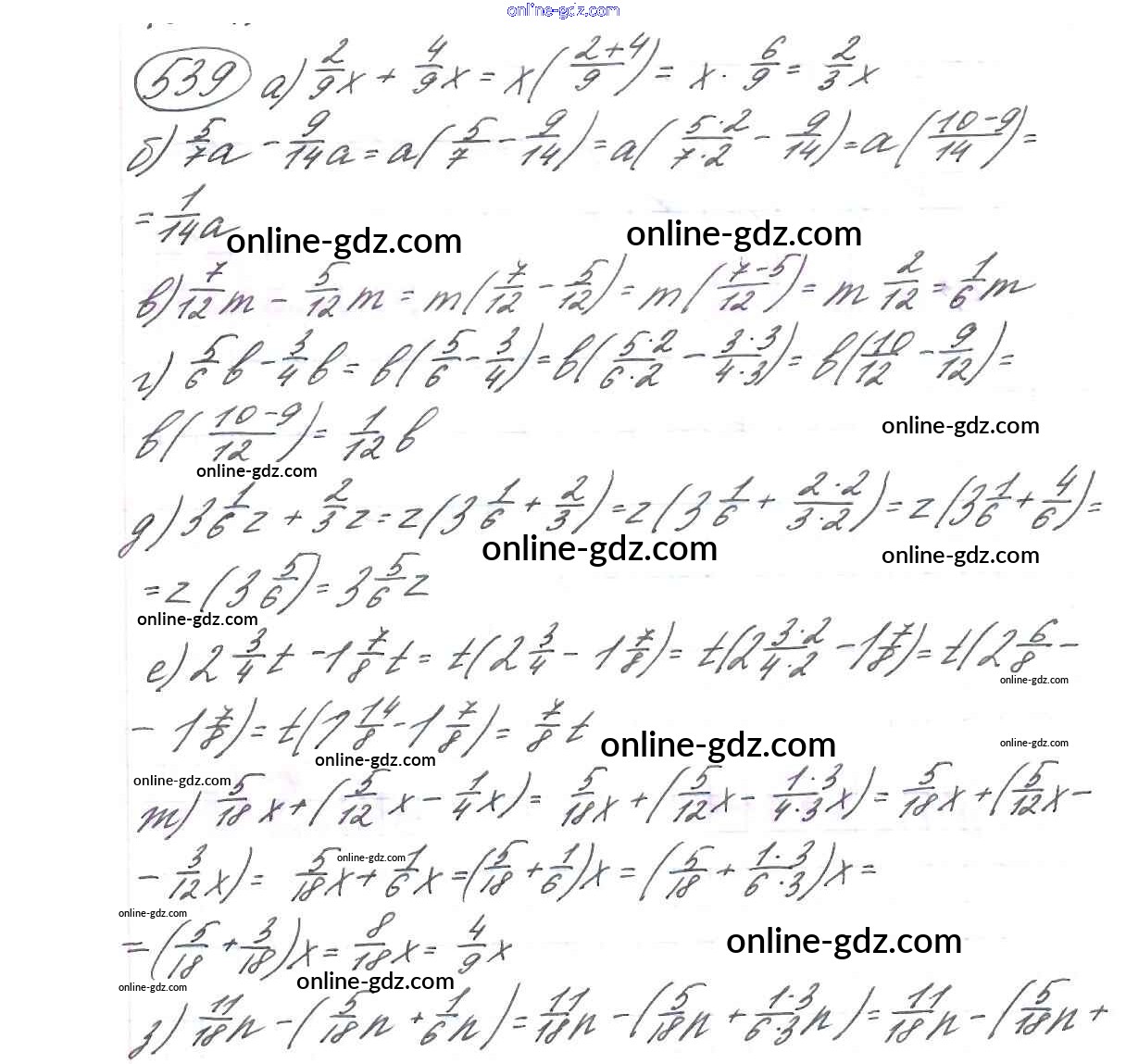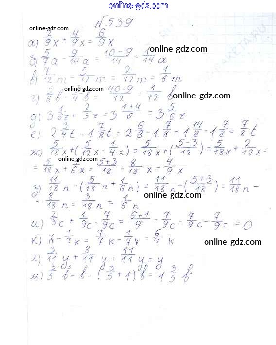 Готовые домашние задания по Математике за 6 класс Учебник Виленкин, Жохов 2014 - §3. Умножение и деление обыкновенных дробей Глава 1 539