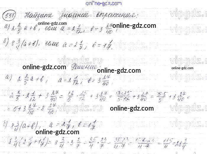 Готовые домашние задания по Математике за 6 класс Учебник Виленкин, Жохов 2014 - §3. Умножение и деление обыкновенных дробей Глава 1 551