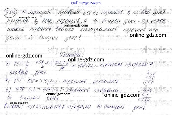Готовые домашние задания по Математике за 6 класс Учебник Виленкин, Жохов 2014 - §3. Умножение и деление обыкновенных дробей Глава 1 564