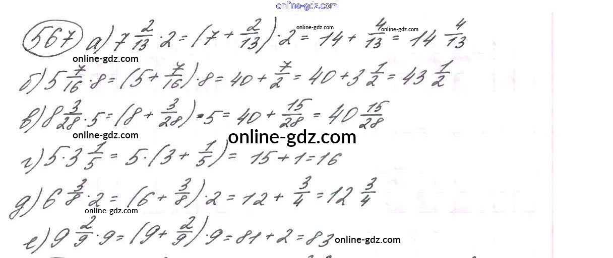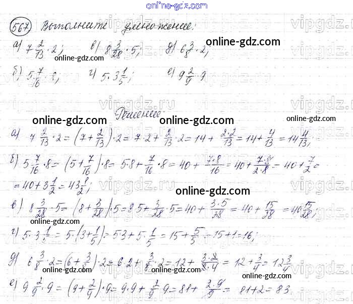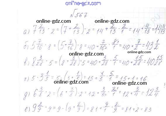 Готовые домашние задания по Математике за 6 класс Учебник Виленкин, Жохов 2014 - §3. Умножение и деление обыкновенных дробей Глава 1 567